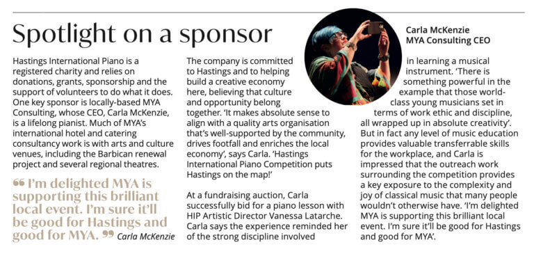 Delighted to be backing Hastings International Piano. Serious artistry, real community reach, and a tangible boost to the local economy.